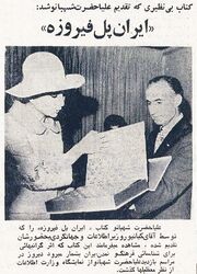 - ↑ بازدید شهبانو فرح پهلوی از نمایشگاه وزارت اطلاعات و جهانگردی و فراداشت کتاب ارزنده ایران پل فیروزه به شهبانوی ایران ۲۳ مهر ماه ۱۳۵۴