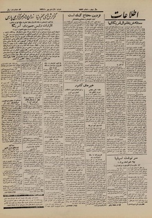 روزنامه اطلاعات روز دوشنبه ۱۶ مهر ماه ۱۳۲۴