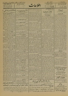 روزنامه اطلاعات روز دوشنبه ۲۲ آبان ماه ۱۳۱۲