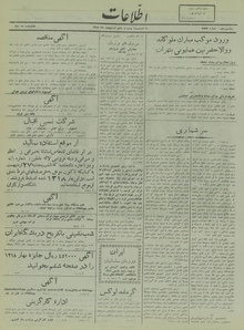 روزنامه اطلاعات روز سهشنبه ۲۵ اردیبهشت ماه ۱۳۱۸