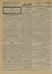 روزنامه اطلاعات روز شنبه ۲۰ آبان ماه ۱۳۱۲