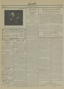 روزنامه اطلاعات روز یکشنبه ۱۴ بهمن ماه ۱۳۱۳