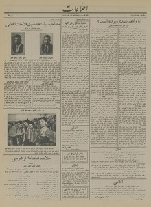روزنامه اطلاعات روز یکشنبه ۱۴ دی ماه ۱۳۱۴