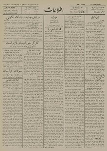 روزنامه اطلاعات روز یکشنبه ۱۹ شهریور ماه ۱۳۱۲