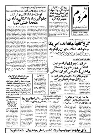 روزنامه مردم روز دوشنبه ۳۱ شهریور ماه ۱۳۵۹