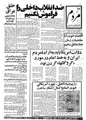 روزنامه مردم روز سهشنبه ۱۵ مهر ماه ۱۳۵۹