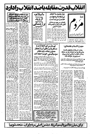 روزنامه مردم روز شنبه ۱ شهریور ماه ۱۳۵۹