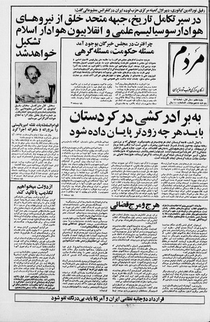 روزنامه مردم روز پنجشنبه ۱۹ مهر ماه ۱۳۵۸