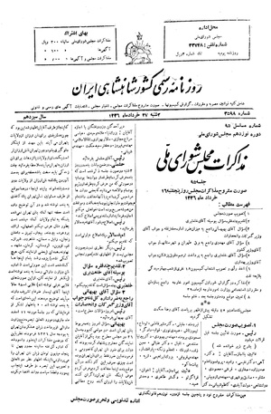 مجلس یک ساعد و ۴۵ دقیقه پیش از ظهر بریاست آقای رضا حکمت تشکیل می‌گردید.