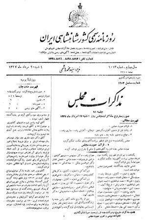 مذاکرات مجلس شورای ملی ۱۷ امرداد ۱۳۲۷ نشست ۹۱