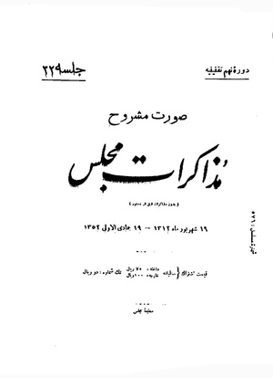 صورت مشروح مجلس روز یکشنبه ۱۹ شهریور ماه ۱۳۱۲ (۱۹ جمادی الاولی ۱۳۵۲)