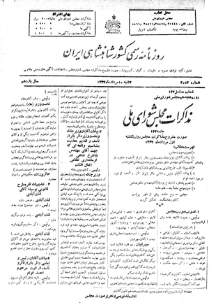 صورت مشروح مذاکرات مجلس روز پنجشنبه ۲۹ تیر ماه ۱۳۳۴