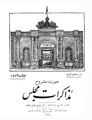 صورت مشروح مجلس روز یکشنبه بیستم مهرماه ۱۳۰۹ (۱۹ جمادی‌الاولی ۱۳۴۹)