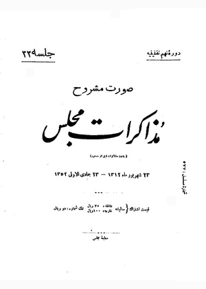 صورت مشروح مجلس روز پنجشنبه ۲۳ شهریور ماه ۱۳۱۲ (۲۳ جمادی الاولی ۱۳۵۲)