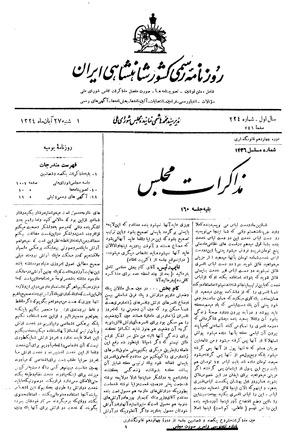 - ۳- طرح گزارش کمیسیون بودجه راجع به افزایش دو لشگر و اضافات افسران