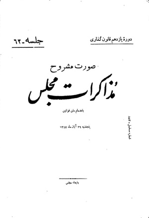 مذاکرات مجلس شورای ملی ۲۶ آبان ۱۳۱۷ نشست ۶۳