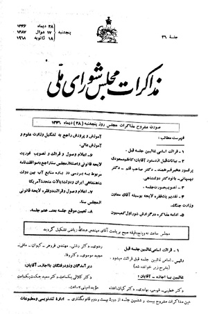 - ادامه مذاکره در گزارش شور اول کمیسیون آموزش و پرورش راجع به تشکیل وزارت علوم و آموزش عالی