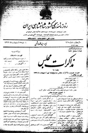 صورت مشروح مذاکرات مجلس روز پنجشنبه نهم اردیبهشت ماه ۱۳۲۷