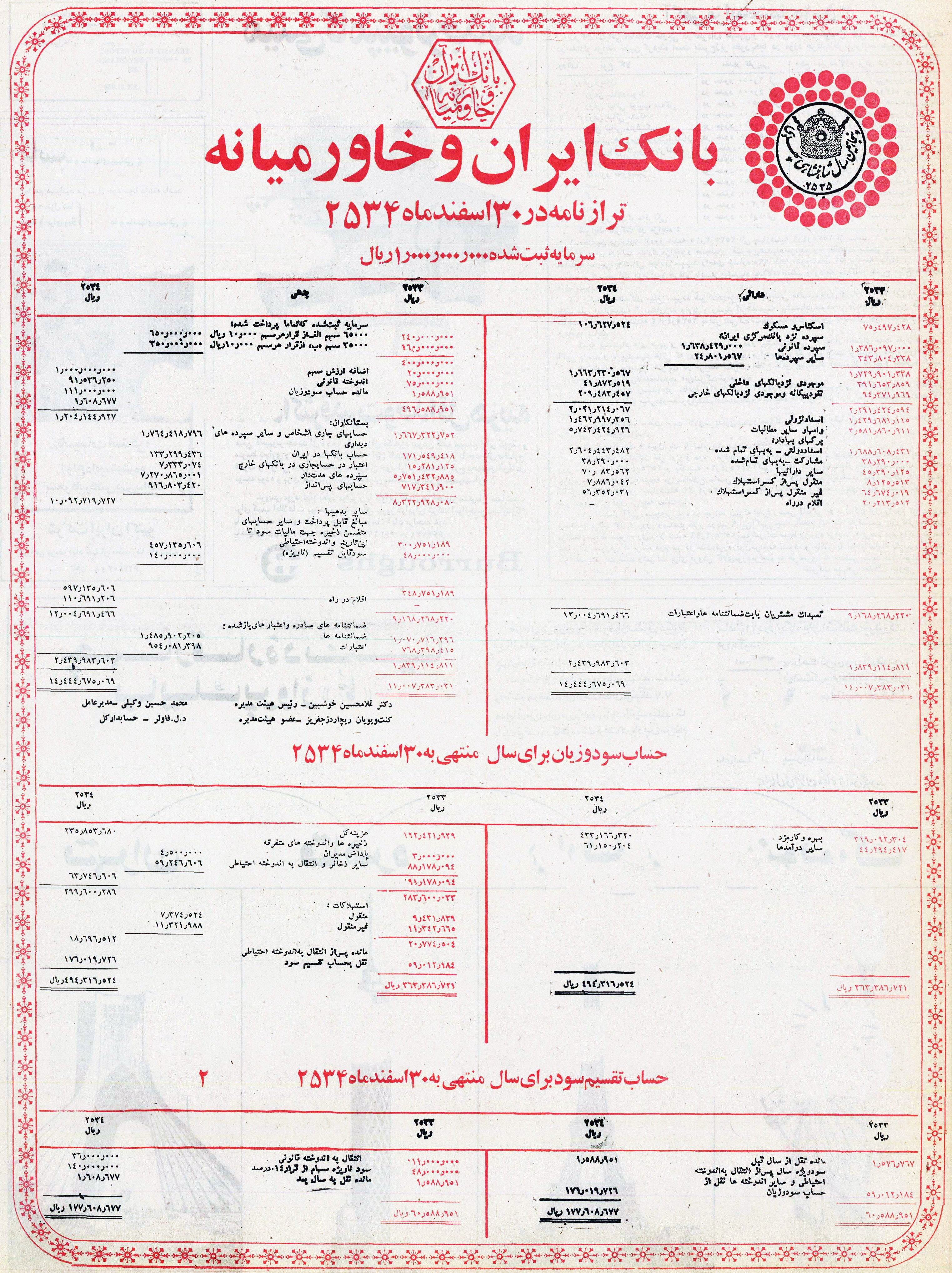 پرونده:BankIranVaKhavarmiyanehBalance2534Shahanshahi.jpg