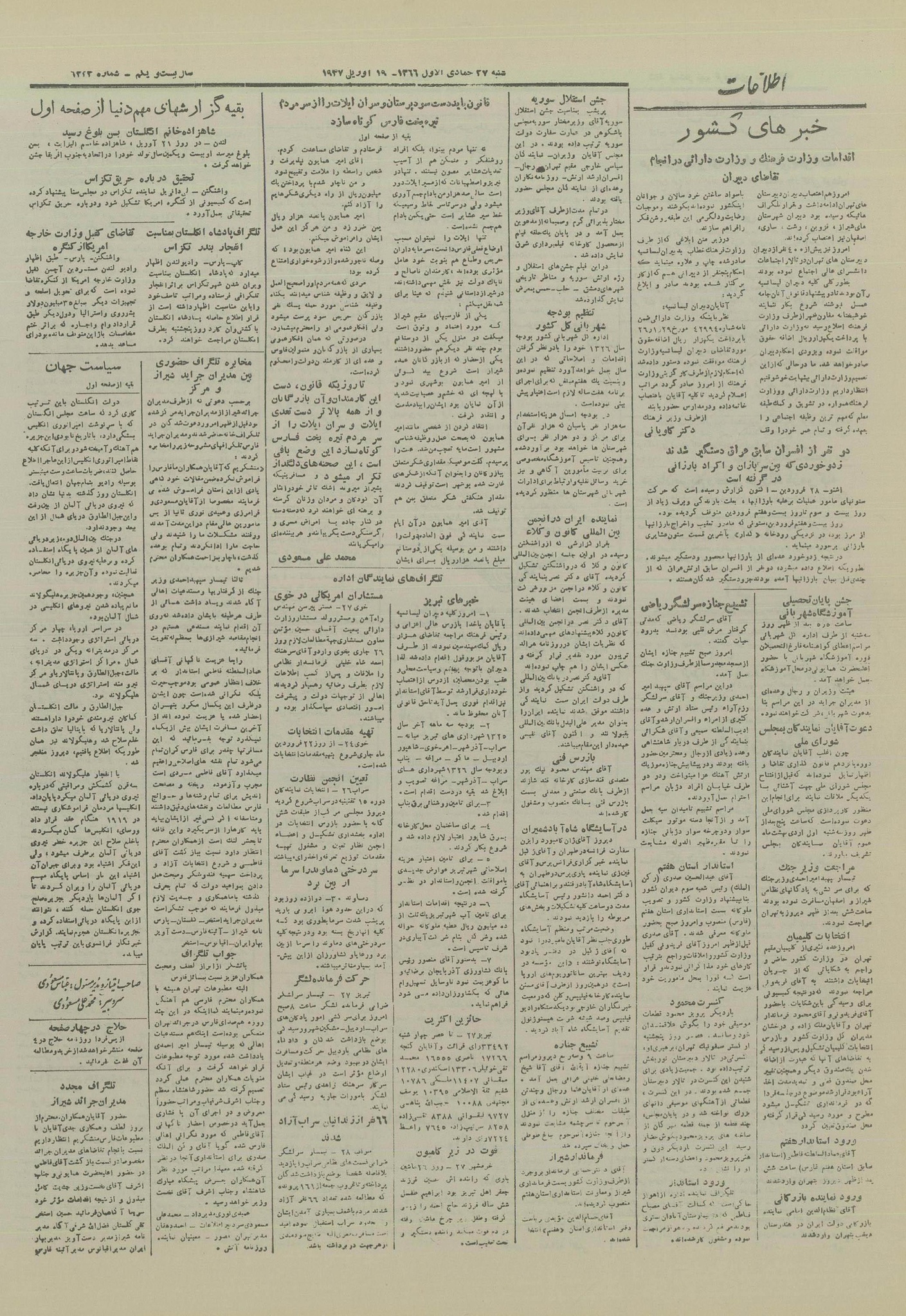 | کنونی | ۱۶ سپتامبر ۲۰۲۵، ساعت ۱۶:۰۴ | ۴٬۴۴۵×۶٬۲۱۸، ۶ صفحه (۵٫۳۳ مگابایت) | Bijan (گفتگو | مشارکتها) | == خلاصه == {{PD-Iran}} رده:روزنامه اطلاعات سال ۱۳۲۶ |