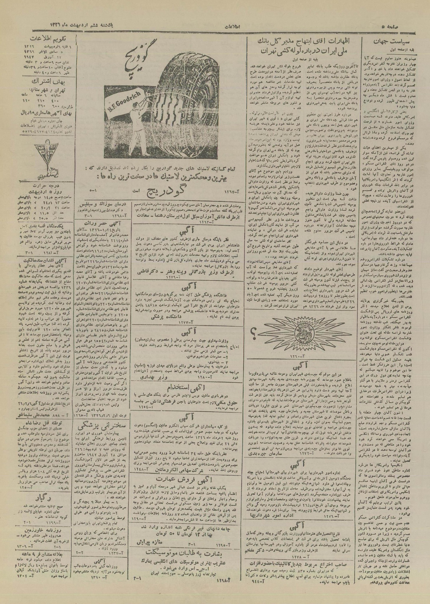 | کنونی | ۱۷ سپتامبر ۲۰۲۵، ساعت ۰۷:۵۹ | ۴٬۴۹۱×۶٬۳۱۰، ۶ صفحه (۵٫۷۸ مگابایت) | Bijan (گفتگو | مشارکتها) | {{PD-Iran}} رده:روزنامه اطلاعات سال ۱۳۲۶ |