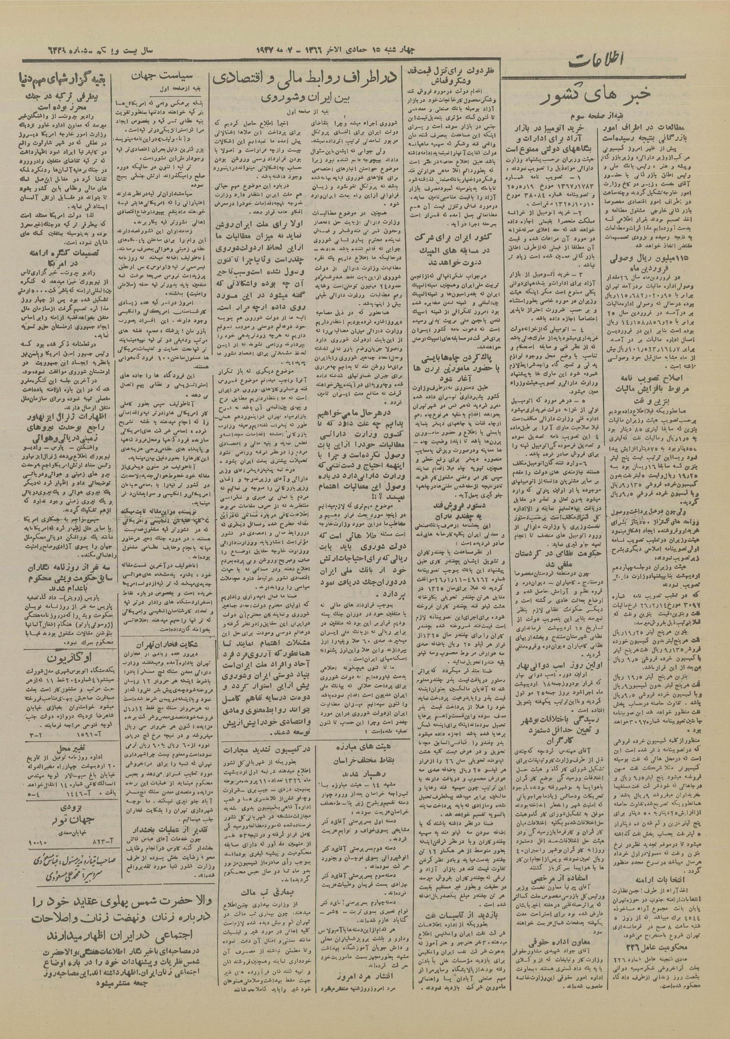 | کنونی | ۱۷ سپتامبر ۲۰۲۵، ساعت ۰۹:۲۱ | ۴٬۵۵۸×۶٬۳۲۰، ۶ صفحه (۵٫۷۹ مگابایت) | Bijan (گفتگو | مشارکتها) | == خلاصه == {{PD-Iran}} رده:روزنامه اطلاعات سال ۱۳۲۶ |