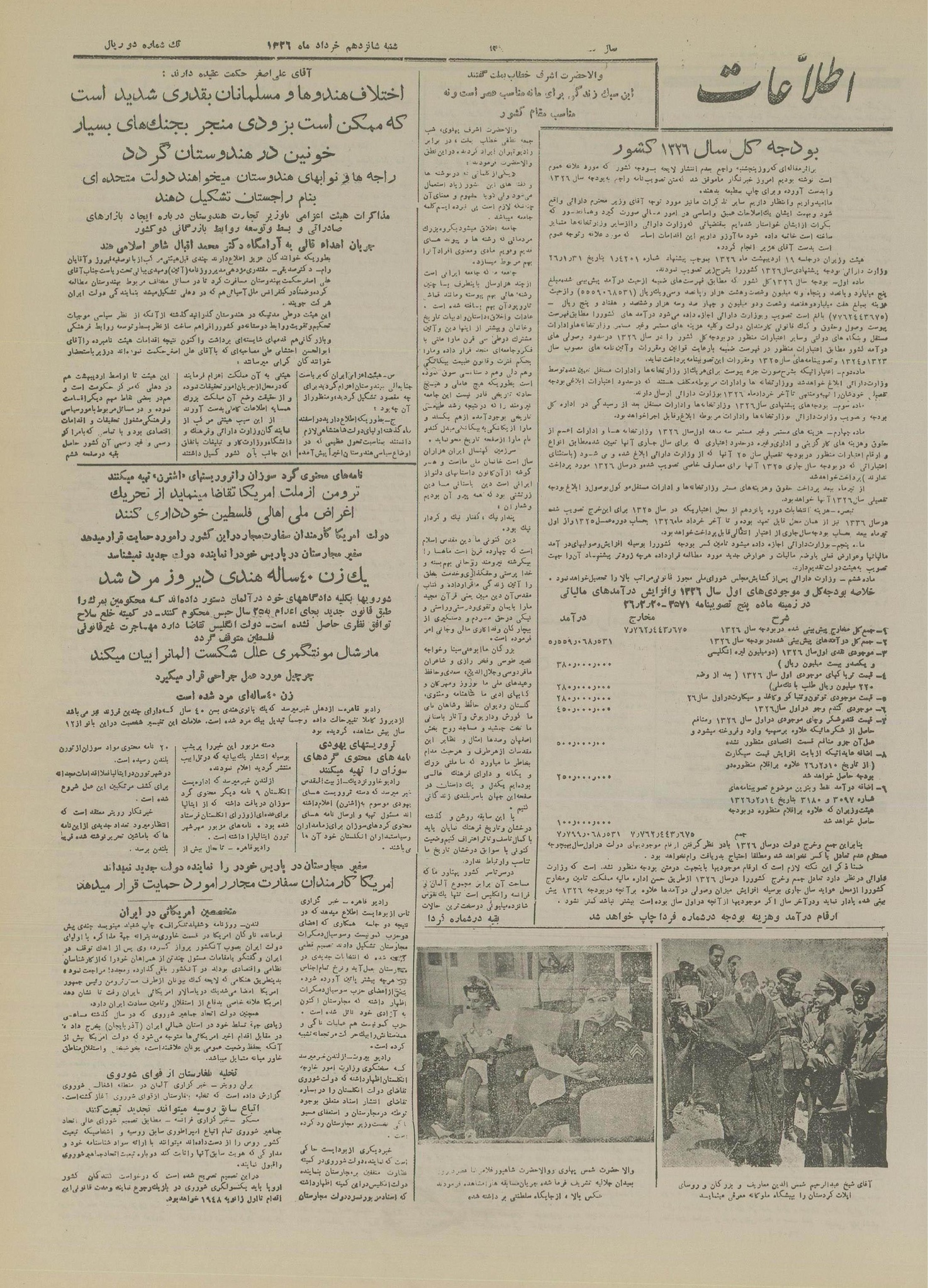 | کنونی | ۱۷ سپتامبر ۲۰۲۵، ساعت ۱۶:۲۸ | ۴٬۵۳۷×۶٬۲۹۷، ۶ صفحه (۵٫۳۹ مگابایت) | Bijan (گفتگو | مشارکتها) | == خلاصه == {{PD-Iran}} رده:روزنامه اطلاعات سال ۱۳۲۶ |
