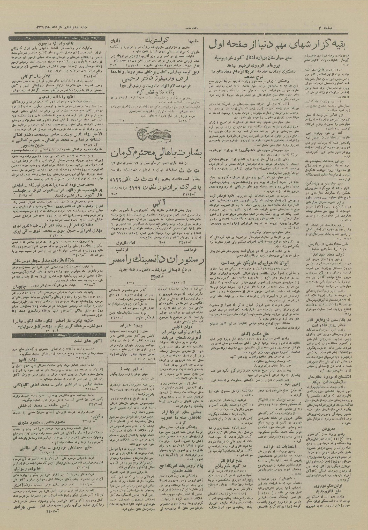 | کنونی | ۱۷ سپتامبر ۲۰۲۵، ساعت ۱۶:۲۸ | ۴٬۵۳۷×۶٬۲۹۷، ۶ صفحه (۵٫۳۹ مگابایت) | Bijan (گفتگو | مشارکتها) | == خلاصه == {{PD-Iran}} رده:روزنامه اطلاعات سال ۱۳۲۶ |