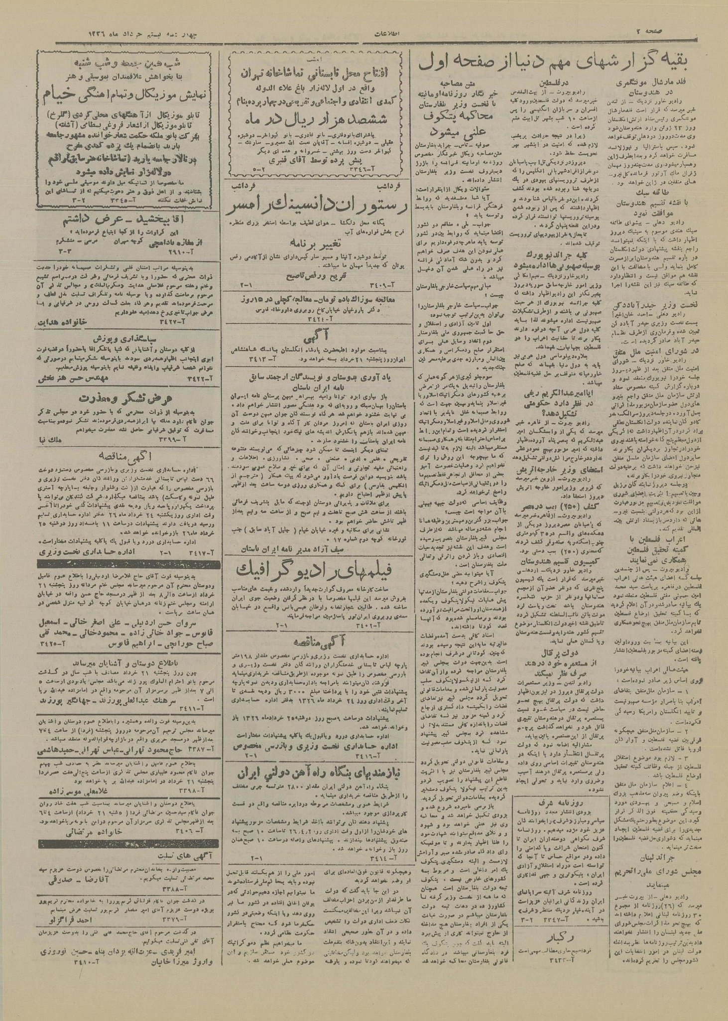 | کنونی | ۱۷ سپتامبر ۲۰۲۵، ساعت ۱۶:۳۰ | ۴٬۴۲۹×۶٬۴۳۳، ۶ صفحه (۵٫۵ مگابایت) | Bijan (گفتگو | مشارکتها) | == خلاصه == {{PD-Iran}} رده:روزنامه اطلاعات سال ۱۳۲۶ |