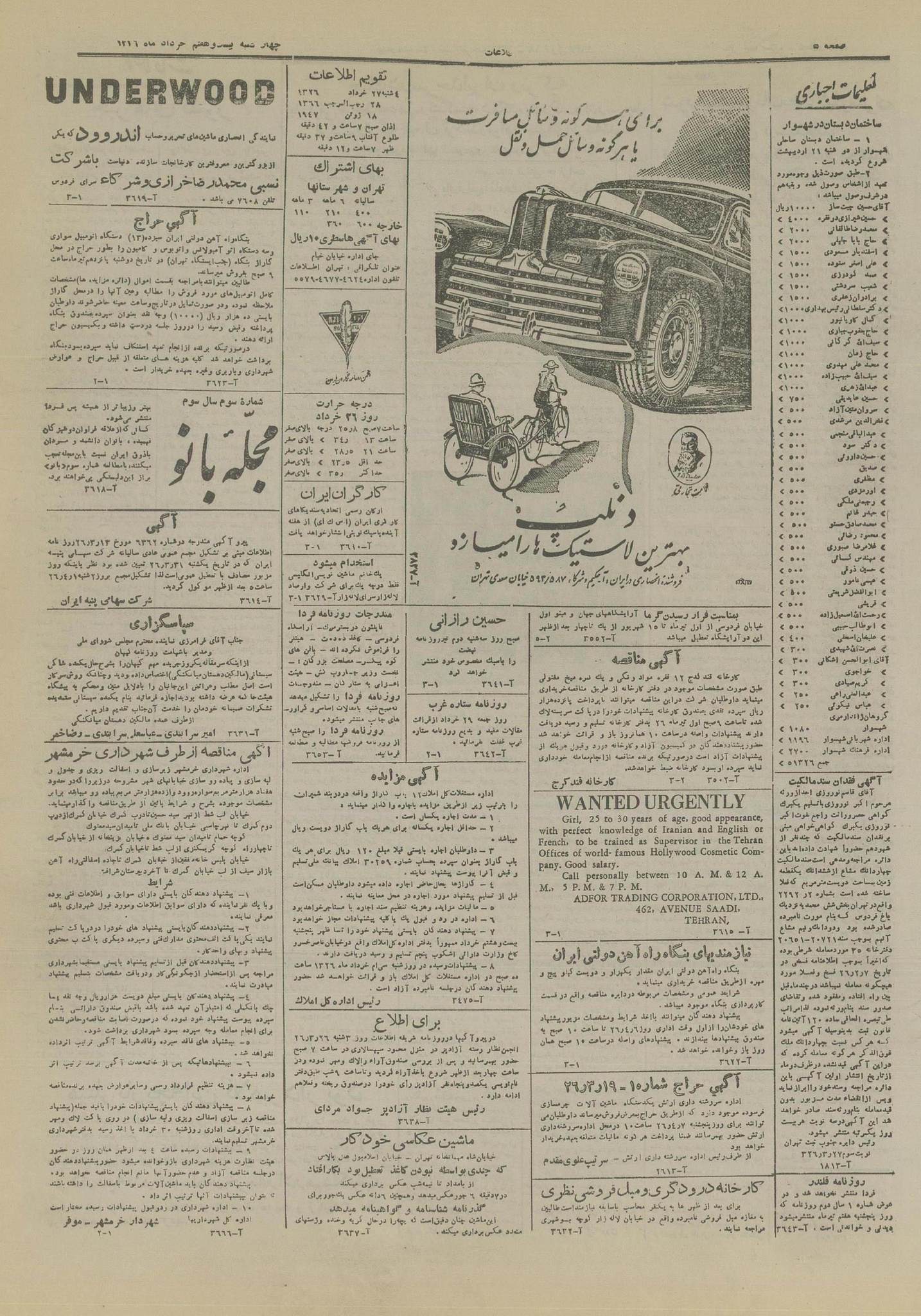 | کنونی | ۱۷ سپتامبر ۲۰۲۵، ساعت ۱۶:۳۴ | ۴٬۴۴۵×۶٬۲۹۵، ۶ صفحه (۵٫۶ مگابایت) | Bijan (گفتگو | مشارکتها) | == خلاصه == {{PD-Iran}} رده:روزنامه اطلاعات سال ۱۳۲۶ |