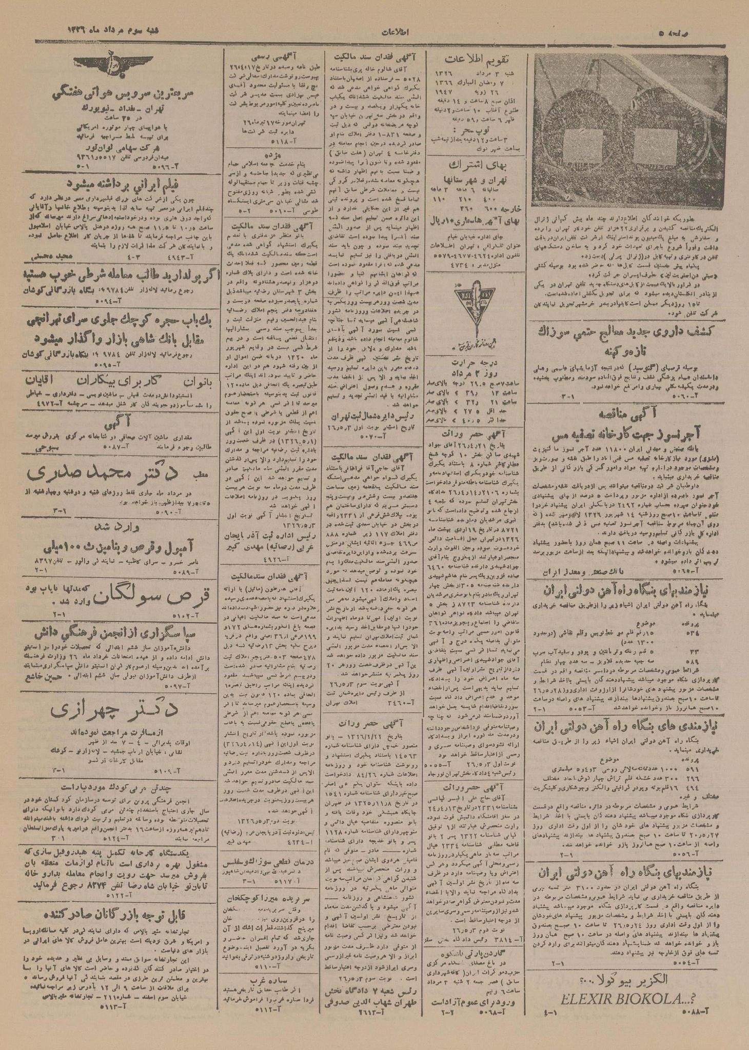 | کنونی | ۱۹ سپتامبر ۲۰۲۵، ساعت ۰۸:۱۵ | ۴٬۴۶۲×۶٬۳۷۰، ۶ صفحه (۵٫۵۵ مگابایت) | Bijan (گفتگو | مشارکتها) | == خلاصه == {{PD-Iran}} رده:روزنامه اطلاعات سال ۱۳۲۶ |
