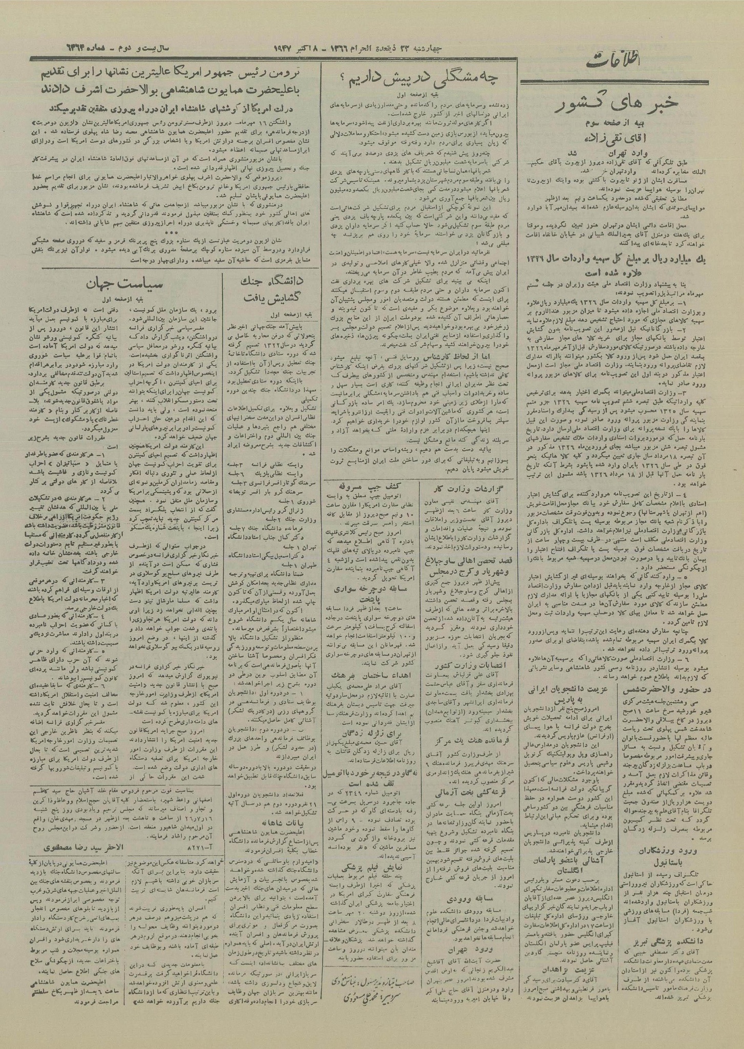 | کنونی | ۱۹ سپتامبر ۲۰۲۵، ساعت ۱۷:۴۰ | ۴٬۴۸۳×۶٬۲۷۹، ۶ صفحه (۵٫۴۸ مگابایت) | Bijan (گفتگو | مشارکتها) | == خلاصه == {{PD-Iran}} رده:روزنامه اطلاعات سال ۱۳۲۶ |