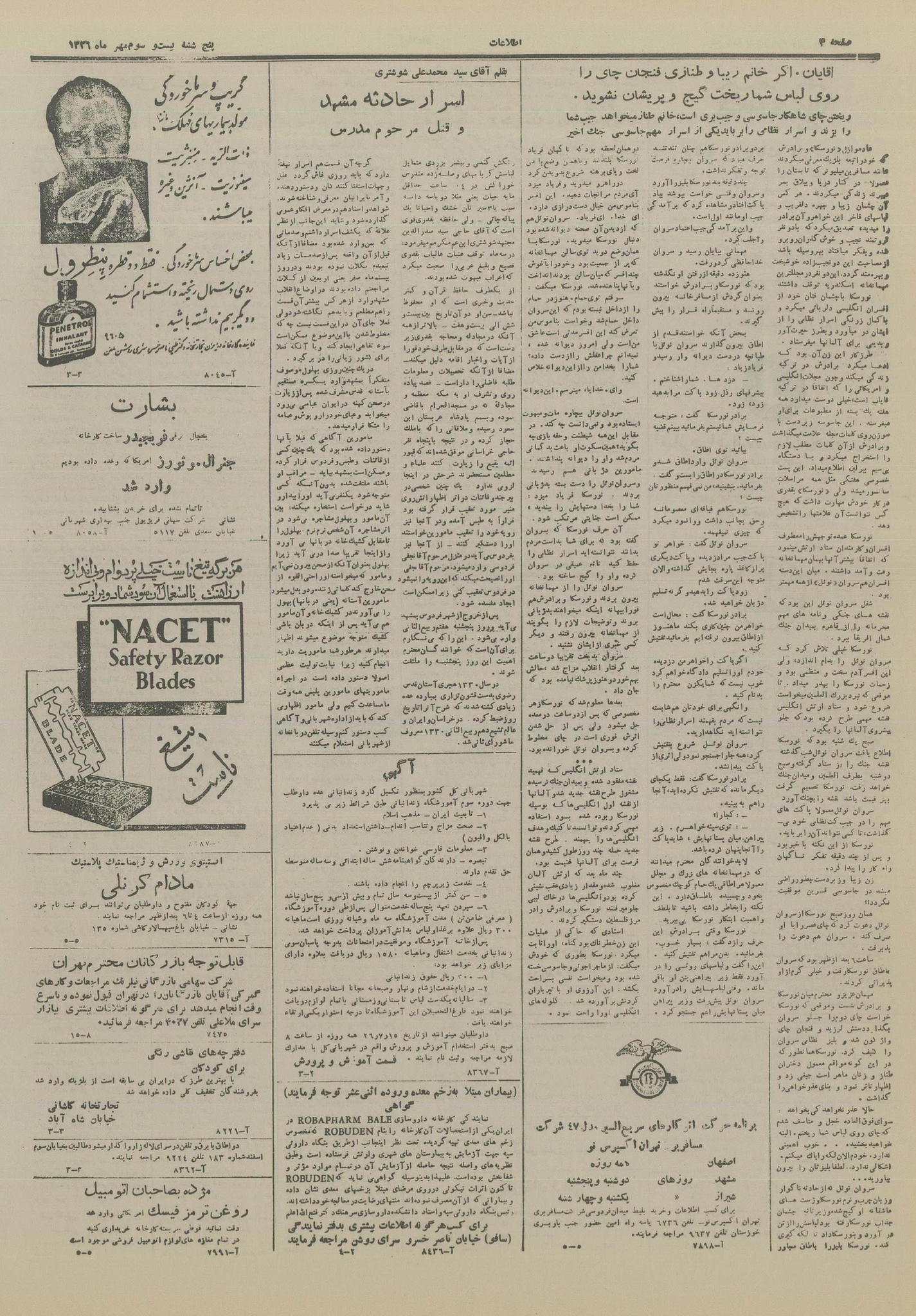 | کنونی | ۱۹ سپتامبر ۲۰۲۵، ساعت ۱۷:۴۶ | ۴٬۴۶۲×۶٬۲۶۰، ۶ صفحه (۵٫۵۲ مگابایت) | Bijan (گفتگو | مشارکتها) | == خلاصه == {{PD-Iran}} رده:روزنامه اطلاعات سال ۱۳۲۶ |