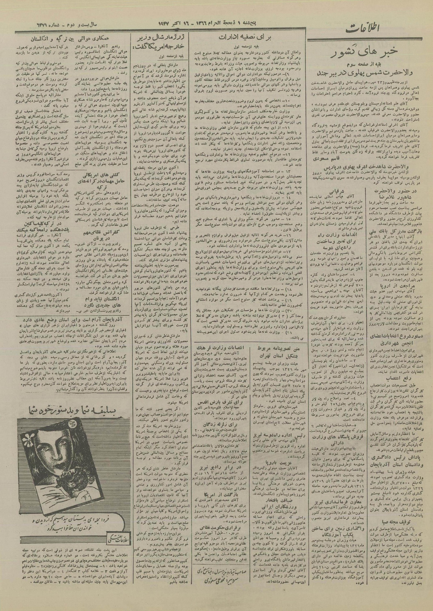 | کنونی | ۱۹ سپتامبر ۲۰۲۵، ساعت ۱۷:۴۶ | ۴٬۴۶۲×۶٬۲۶۰، ۶ صفحه (۵٫۵۲ مگابایت) | Bijan (گفتگو | مشارکتها) | == خلاصه == {{PD-Iran}} رده:روزنامه اطلاعات سال ۱۳۲۶ |