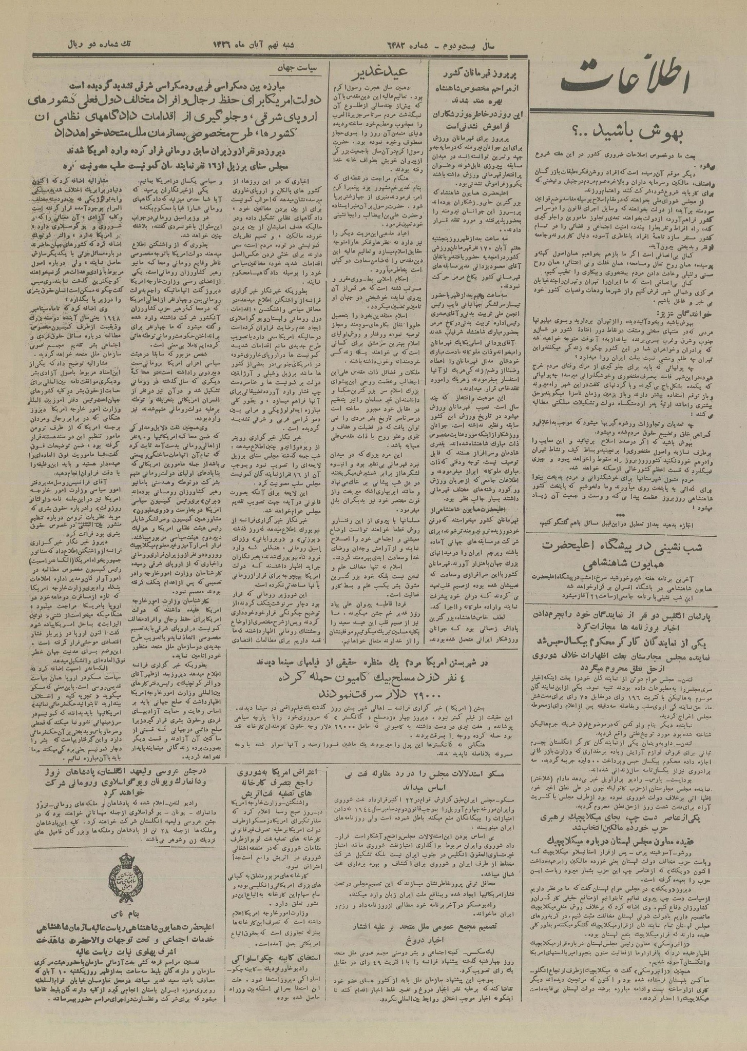 | کنونی | ۲۱ سپتامبر ۲۰۲۵، ساعت ۱۴:۲۰ | ۴٬۴۷۲×۶٬۲۹۵، ۶ صفحه (۵٫۵۲ مگابایت) | Bijan (گفتگو | مشارکتها) | == خلاصه == {{PD-Iran}} رده:روزنامه اطلاعات سال ۱۳۲۶ |