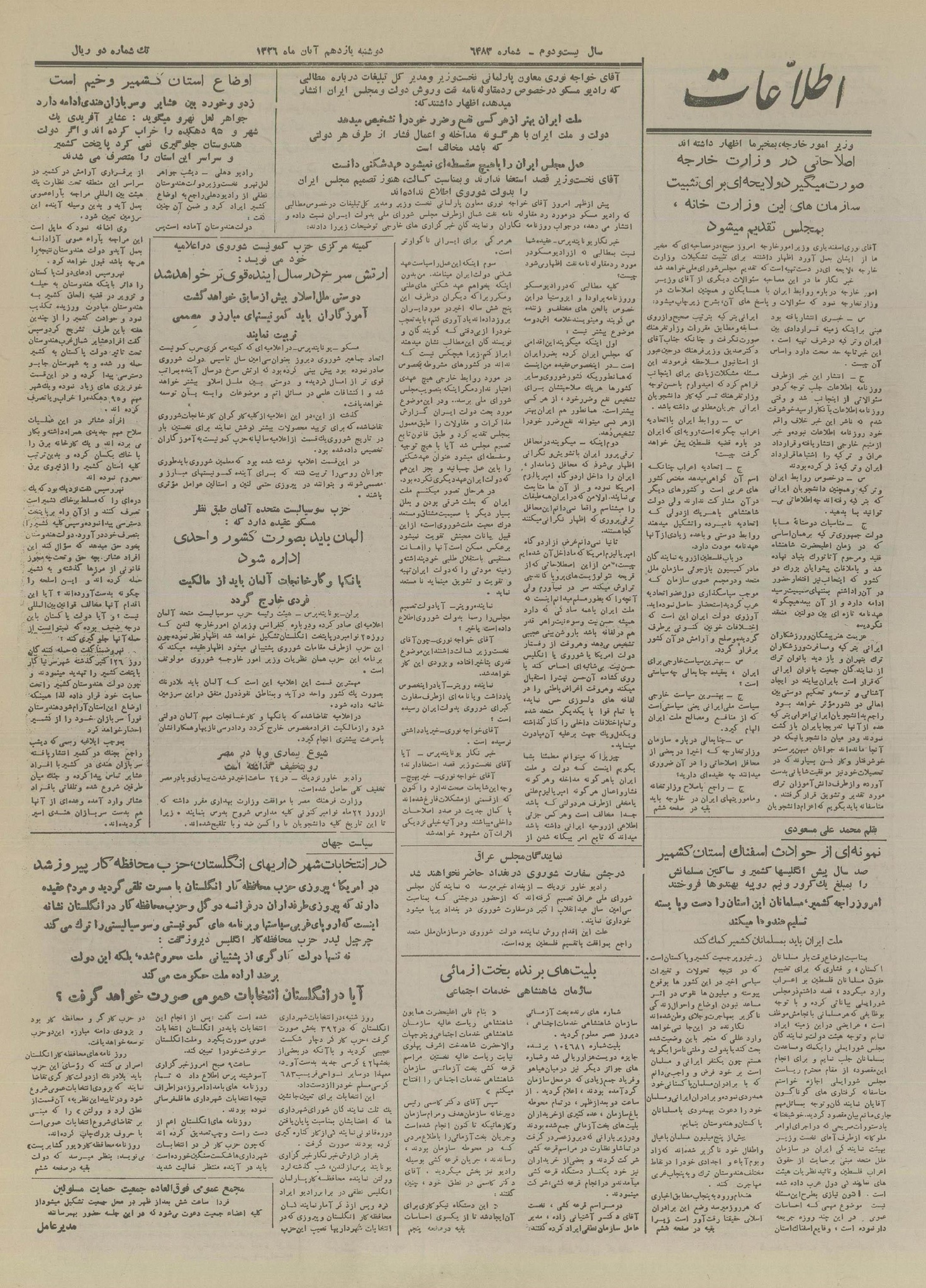 | کنونی | ۲۱ سپتامبر ۲۰۲۵، ساعت ۱۴:۲۱ | ۴٬۴۸۱×۶٬۲۳۵، ۶ صفحه (۵٫۶۱ مگابایت) | Bijan (گفتگو | مشارکتها) | == خلاصه == {{PD-Iran}} رده:روزنامه اطلاعات سال ۱۳۲۶ |