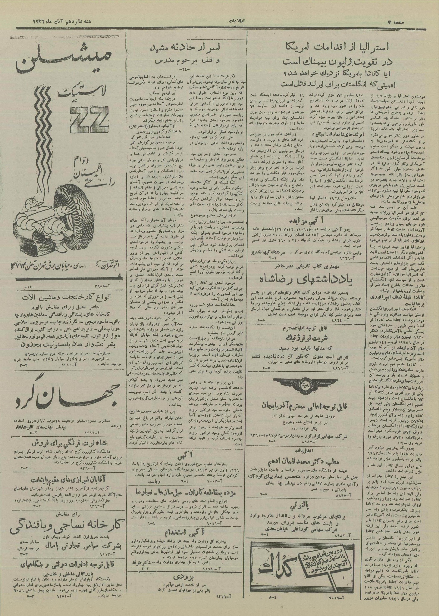 | کنونی | ۲۱ سپتامبر ۲۰۲۵، ساعت ۱۴:۲۵ | ۴٬۵۱۰×۶٬۴۱۴، ۶ صفحه (۵٫۴ مگابایت) | Bijan (گفتگو | مشارکتها) | == خلاصه == {{PD-Iran}} رده:روزنامه اطلاعات سال ۱۳۲۶ |