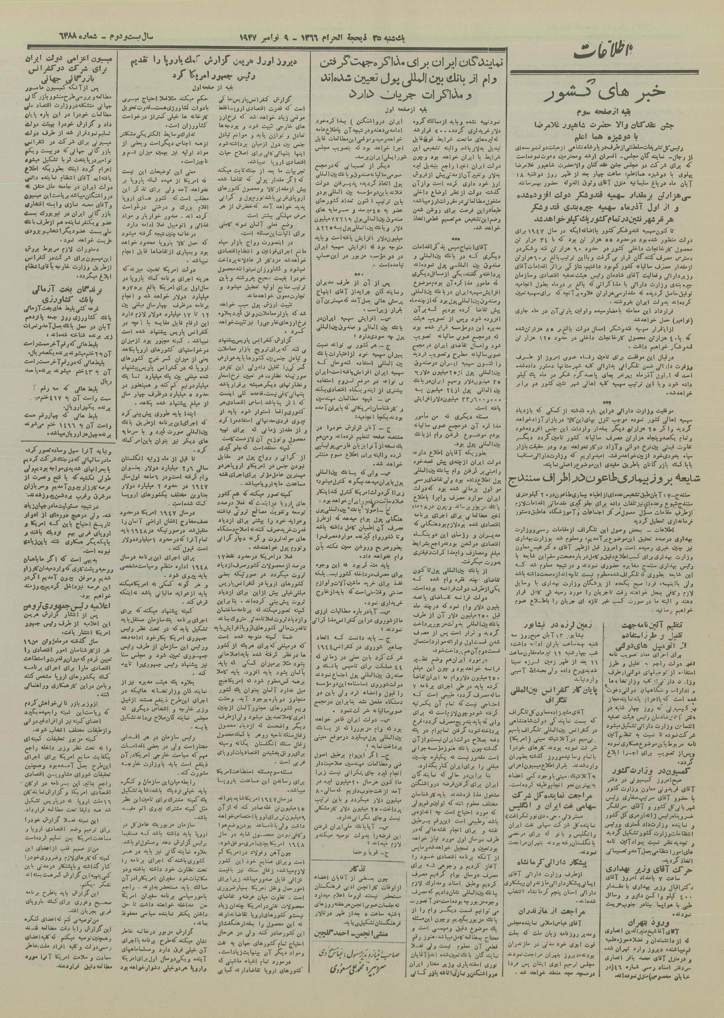 | کنونی | ۲۱ سپتامبر ۲۰۲۵، ساعت ۱۴:۲۶ | ۴٬۵۰۰×۶٬۳۰۸، ۶ صفحه (۵٫۷۶ مگابایت) | Bijan (گفتگو | مشارکتها) | == خلاصه == {{PD-Iran}} رده:روزنامه اطلاعات سال ۱۳۲۶ |