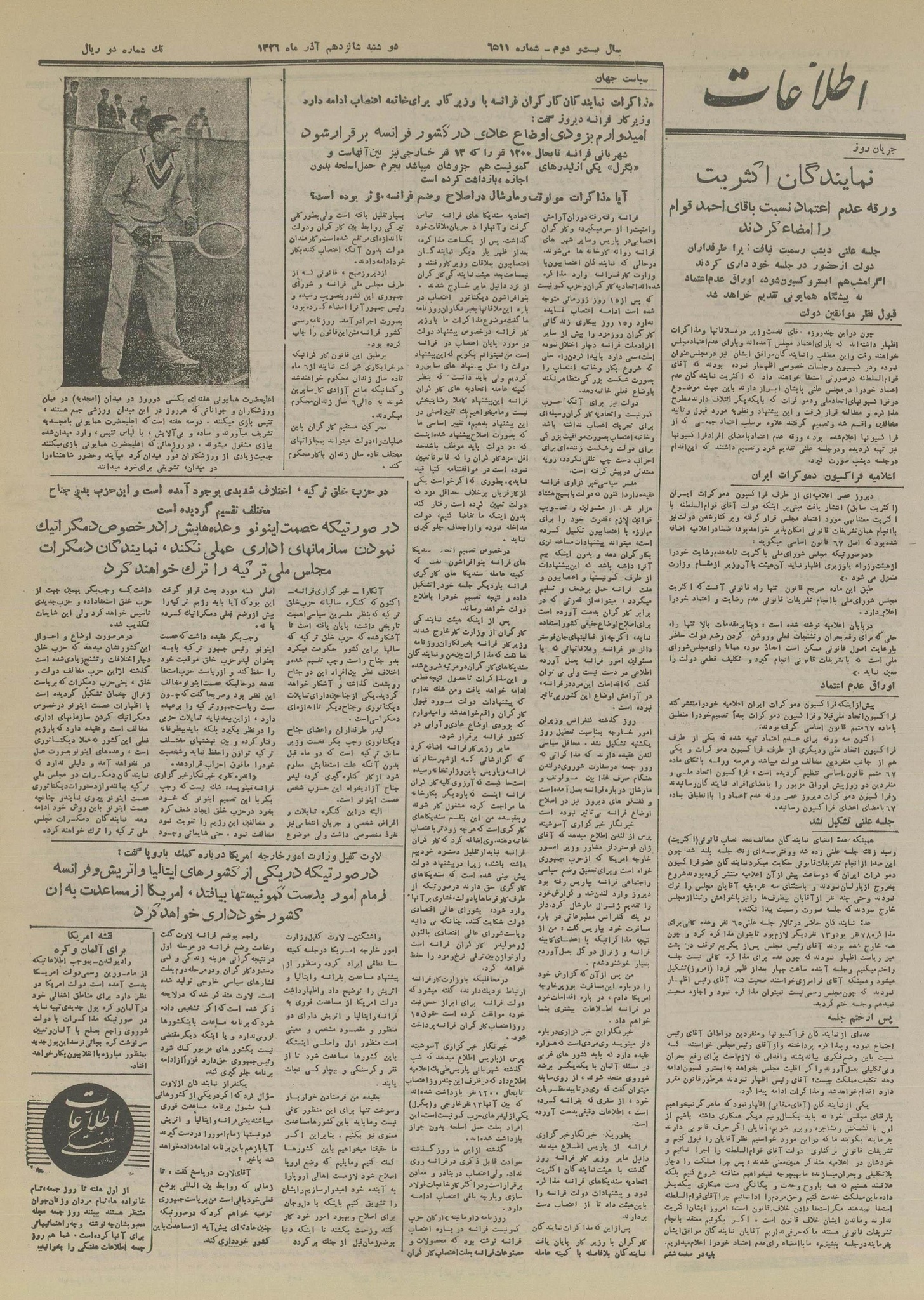 | کنونی | ۲۱ سپتامبر ۲۰۲۵، ساعت ۱۸:۴۷ | ۴٬۴۱۸×۶٬۲۱۴، ۶ صفحه (۵٫۳۵ مگابایت) | Bijan (گفتگو | مشارکتها) | == خلاصه == {{PD-Iran}} رده:روزنامه اطلاعات سال ۱۳۲۶ |
