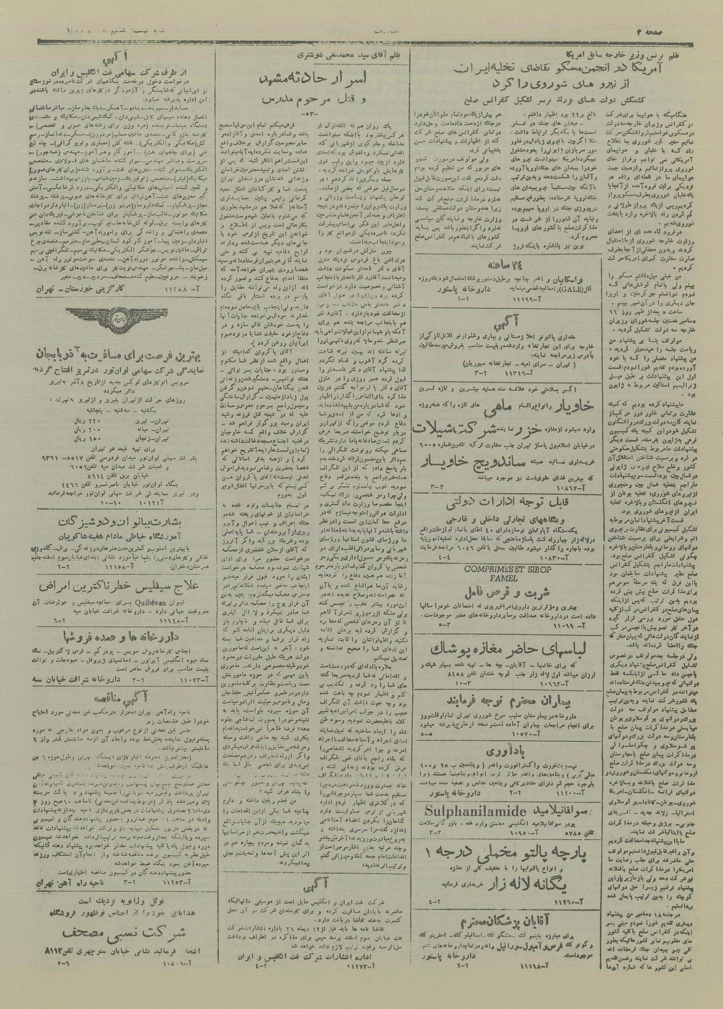 | کنونی | ۲۱ سپتامبر ۲۰۲۵، ساعت ۱۸:۵۸ | ۴٬۴۶۲×۶٬۲۹۷، ۸ صفحه (۷٫۲۸ مگابایت) | Bijan (گفتگو | مشارکتها) | == خلاصه == {{PD-Iran}} رده:روزنامه اطلاعات سال ۱۳۲۶ |