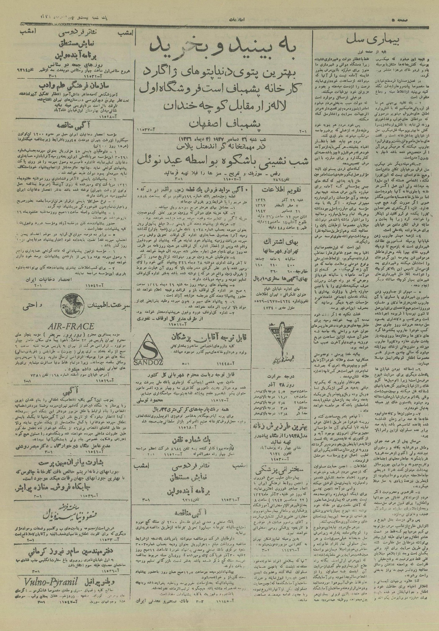 | کنونی | ۲۱ سپتامبر ۲۰۲۵، ساعت ۱۸:۵۸ | ۴٬۴۳۵×۶٬۲۷۹، ۶ صفحه (۵٫۵۱ مگابایت) | Bijan (گفتگو | مشارکتها) | == خلاصه == {{PD-Iran}} رده:روزنامه اطلاعات سال ۱۳۲۶ |