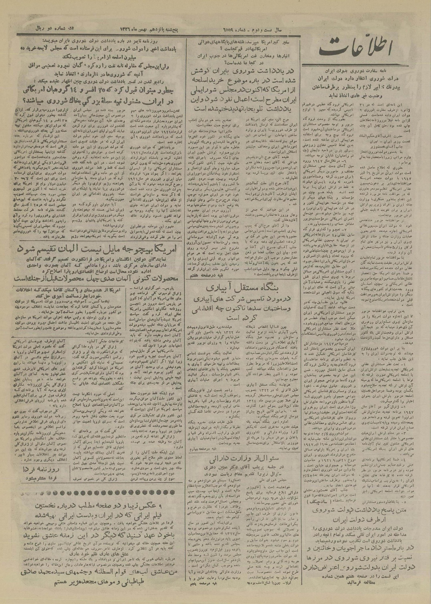 | کنونی | ۲۲ سپتامبر ۲۰۲۵، ساعت ۱۷:۴۹ | ۴٬۴۸۱×۶٬۲۷۰، ۸ صفحه (۷٫۶۹ مگابایت) | Bijan (گفتگو | مشارکتها) | == خلاصه == {{PD-Iran}} رده:روزنامه اطلاعات سال ۱۳۲۶ |