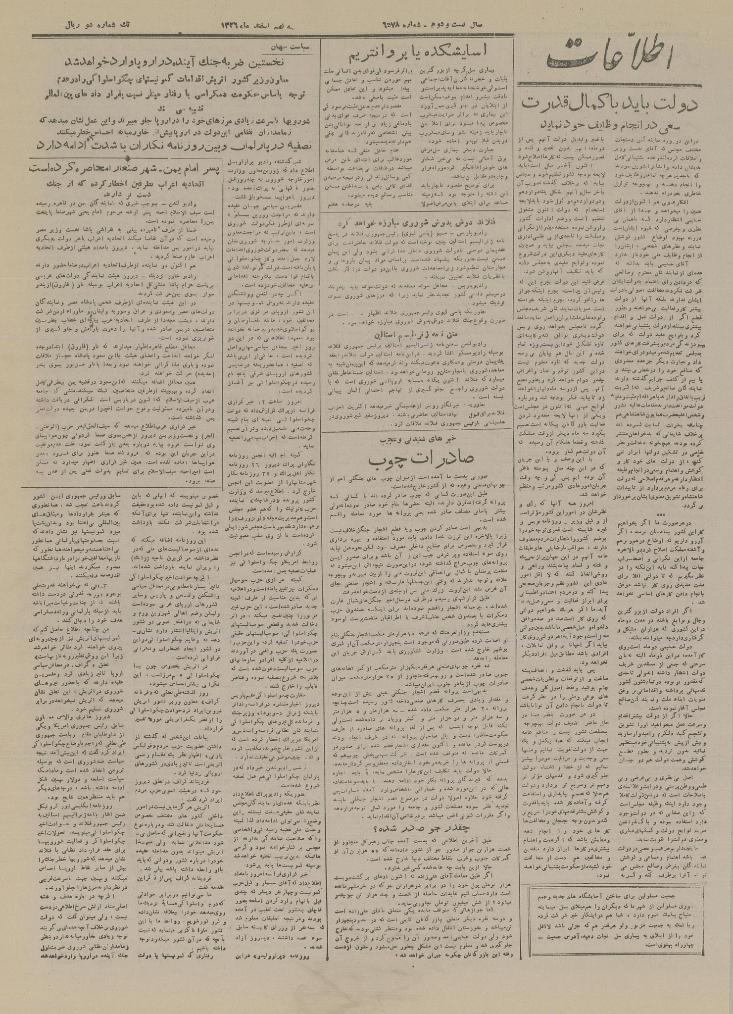 | کنونی | ۲۲ سپتامبر ۲۰۲۵، ساعت ۱۸:۲۵ | ۴٬۴۵۴×۶٬۱۶۰، ۸ صفحه (۷٫۷۸ مگابایت) | Bijan (گفتگو | مشارکتها) | == خلاصه == {{PD-Iran}} رده:روزنامه اطلاعات سال ۱۳۲۶ |