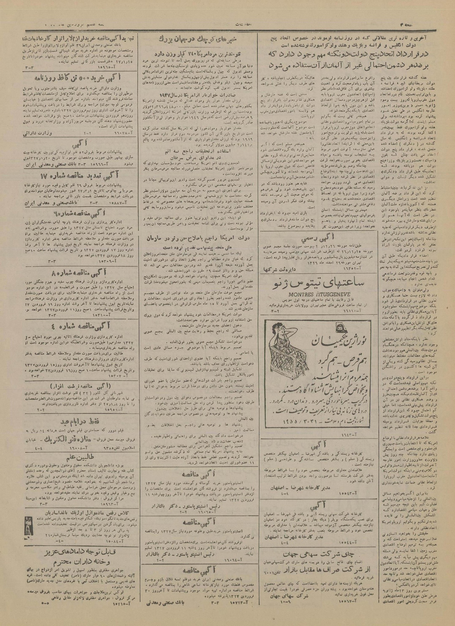 | کنونی | ۲۳ سپتامبر ۲۰۲۵، ساعت ۰۹:۴۹ | ۴٬۵۱۶×۶٬۲۳۱، ۸ صفحه (۶٫۹۱ مگابایت) | Bijan (گفتگو | مشارکتها) | == خلاصه == {{PD-Iran}} رده:روزنامه اطلاعات سال ۱۳۲۷ |