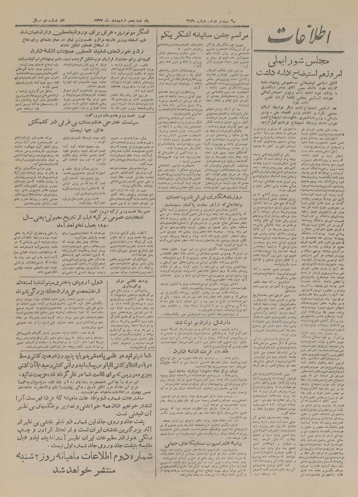 | کنونی | ۲۳ سپتامبر ۲۰۲۵، ساعت ۱۸:۰۰ | ۴٬۴۳۵×۶٬۱۶۰، ۸ صفحه (۶٫۷۳ مگابایت) | Bijan (گفتگو | مشارکتها) | == خلاصه == {{PD-Iran}} رده:روزنامه اطلاعات سال ۱۳۲۷ |