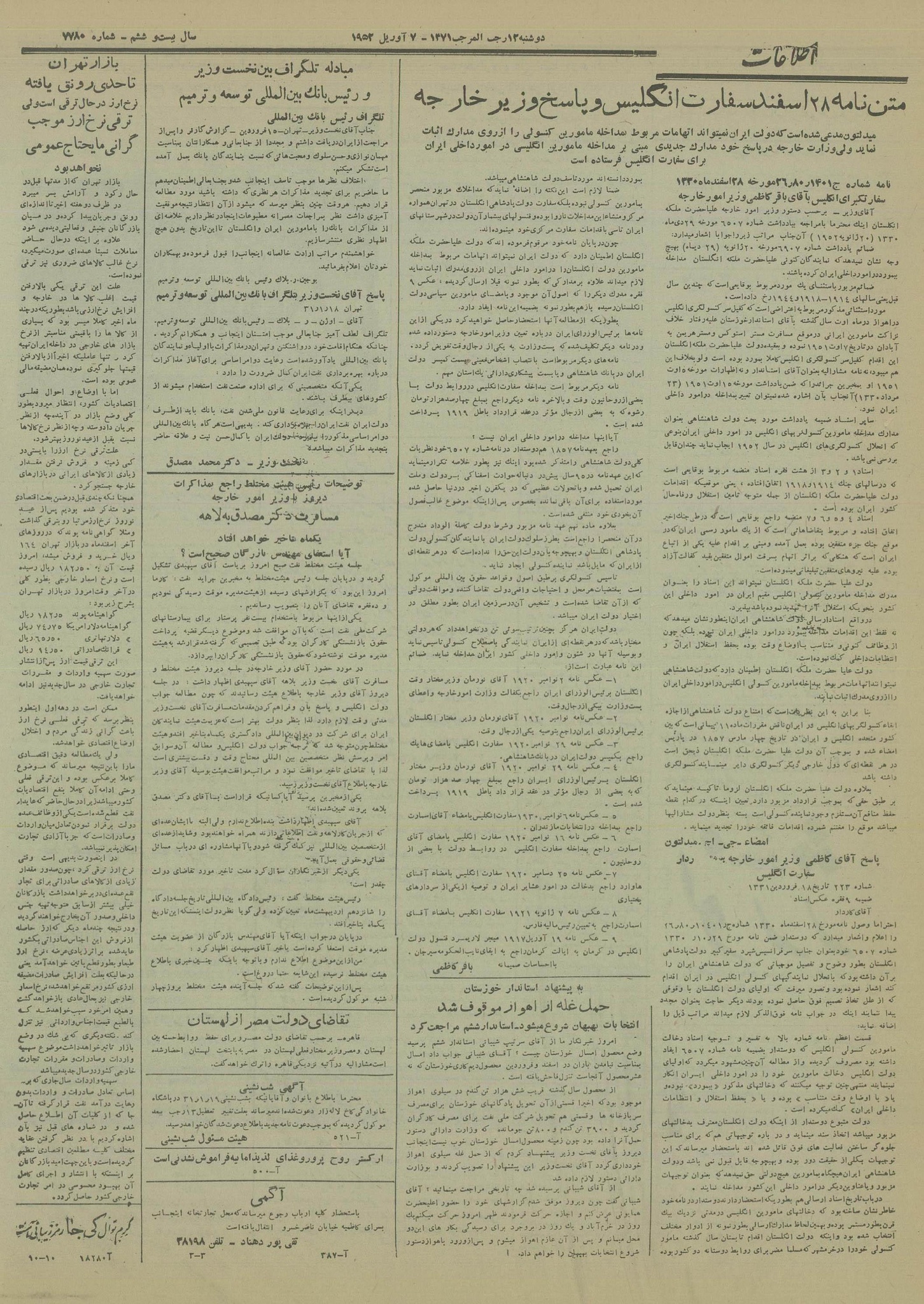 | کنونی | ۲۴ سپتامبر ۲۰۲۲، ساعت ۱۶:۴۶ | ۴٬۴۶۶×۶٬۳۳۱، ۸ صفحه (۷٫۱۴ مگابایت) | Bijan (گفتگو | مشارکتها) | == خلاصه == {{PD-Iran}} رده:روزنامه اطلاعات سال ۱۳۳۱ |
