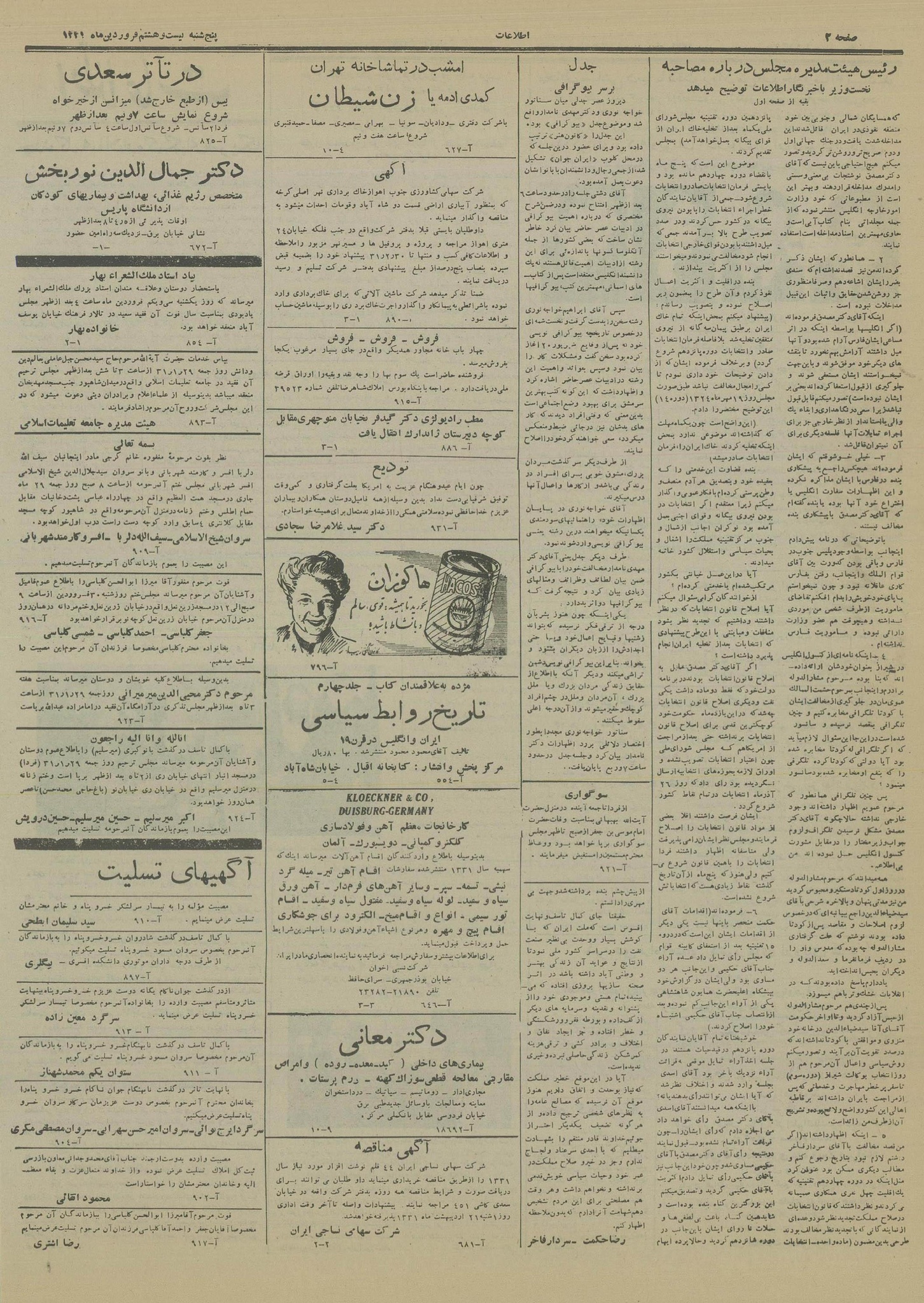 | کنونی | ۲۴ سپتامبر ۲۰۲۲، ساعت ۱۶:۵۳ | ۴٬۶۰۴×۶٬۲۰۴، ۸ صفحه (۷٫۲۴ مگابایت) | Bijan (گفتگو | مشارکتها) | == خلاصه == {{PD-Iran}} رده:روزنامه اطلاعات سال ۱۳۳۱ |