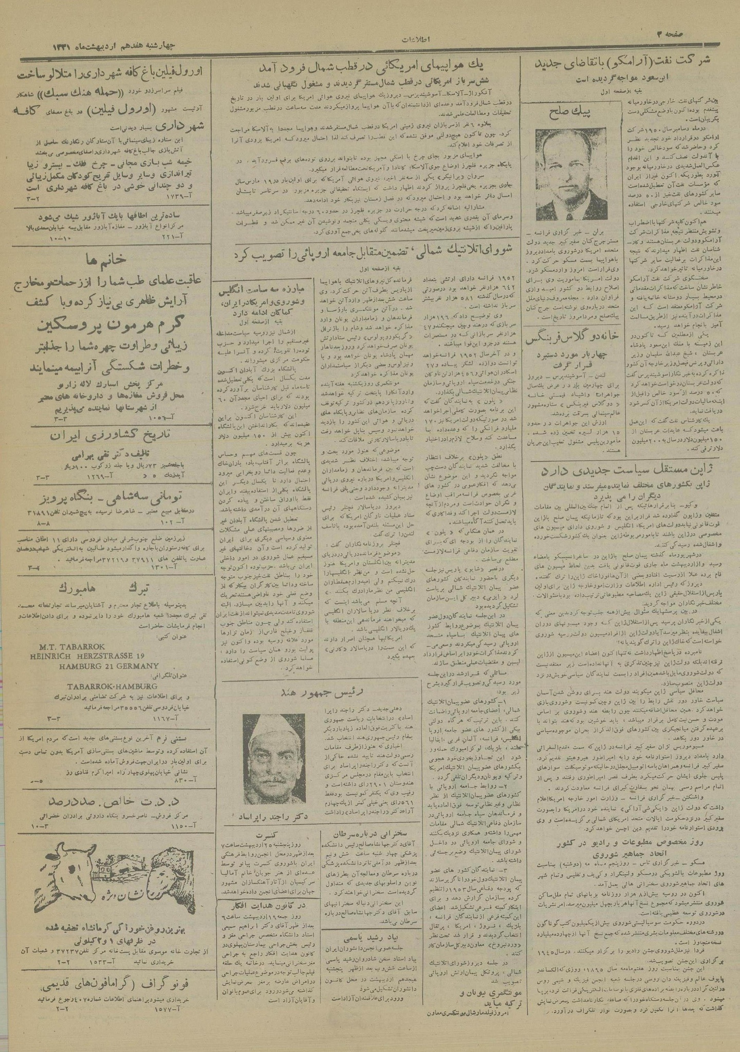 | کنونی | ۲۵ سپتامبر ۲۰۲۲، ساعت ۰۵:۳۹ | ۴٬۴۵۸×۶٬۳۰۲، ۸ صفحه (۶٫۸۱ مگابایت) | Bijan (گفتگو | مشارکتها) | == خلاصه == {{PD-Iran}} رده:روزنامه اطلاعات سال ۱۳۳۱ |