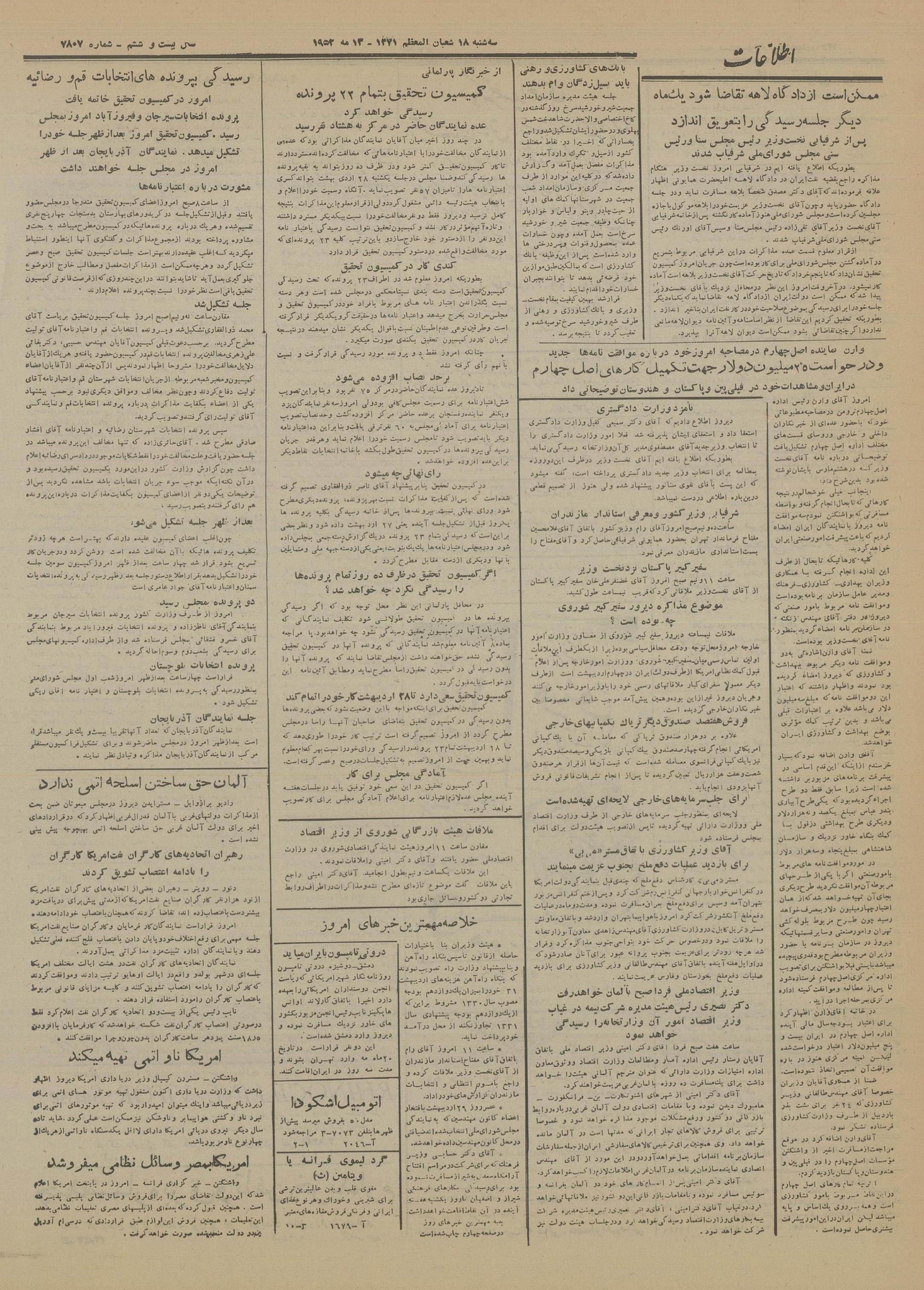 | کنونی | ۲۵ سپتامبر ۲۰۲۲، ساعت ۰۵:۴۲ | ۴٬۵۵۰×۶٬۱۶۶، ۸ صفحه (۷٫۱۵ مگابایت) | Bijan (گفتگو | مشارکتها) | == خلاصه == {{PD-Iran}} رده:روزنامه اطلاعات سال ۱۳۳۱ |