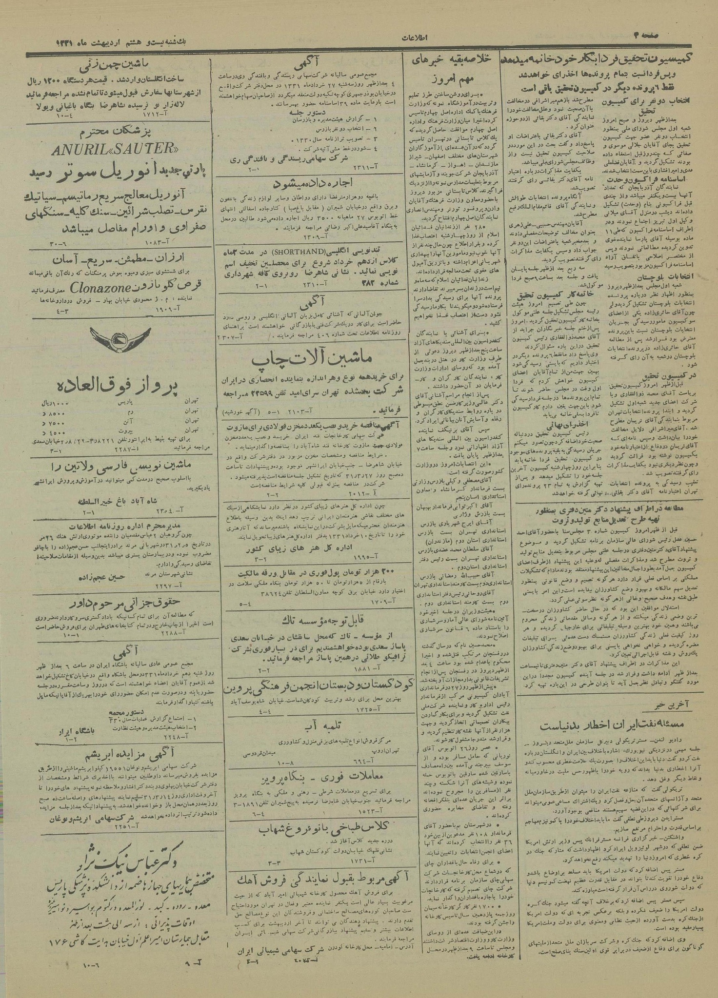 | کنونی | ۲۵ سپتامبر ۲۰۲۲، ساعت ۰۵:۴۴ | ۴٬۵۹۵×۶٬۲۳۹، ۸ صفحه (۶٫۸۹ مگابایت) | Bijan (گفتگو | مشارکتها) | == خلاصه == {{PD-Iran}} رده:روزنامه اطلاعات سال ۱۳۳۱ |